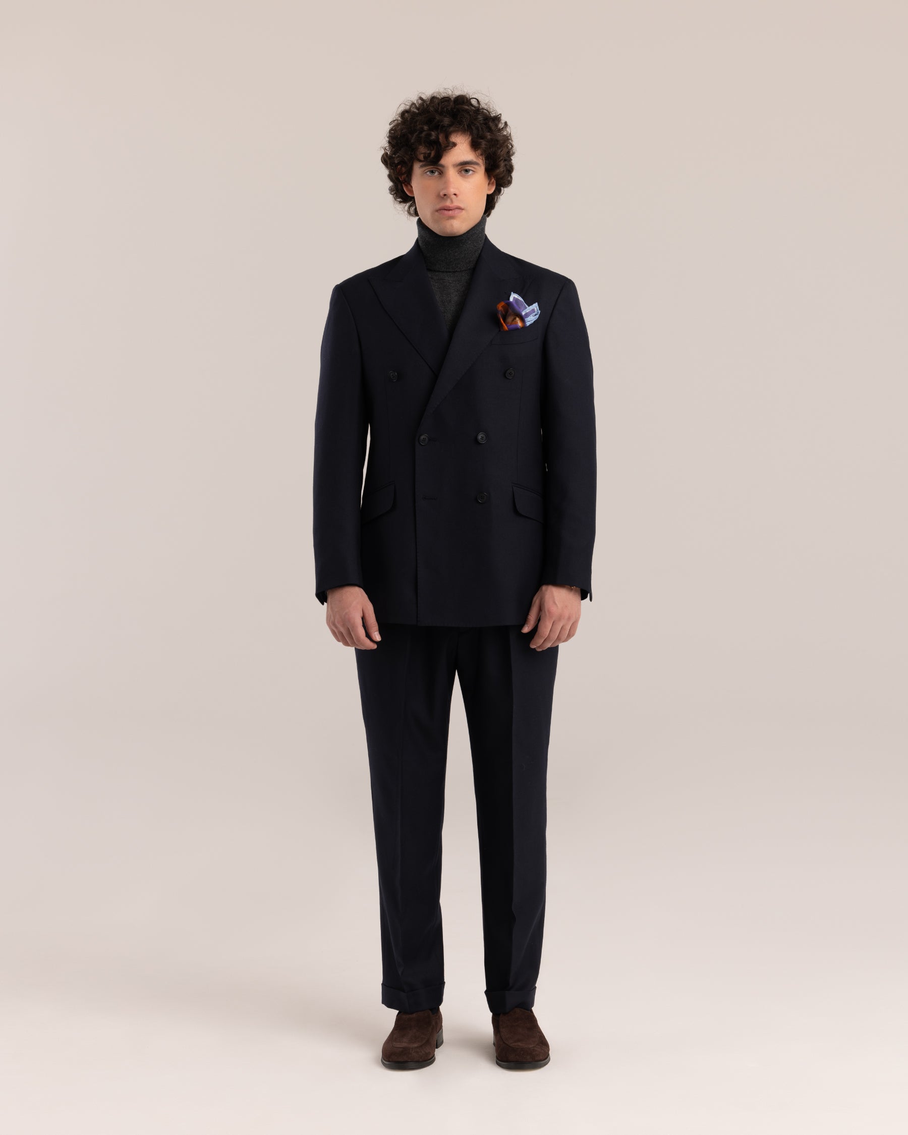 The Pallecarte double-breasted blazer combines timeless tailoring with modern proportions for a refined, structured silhouette. Cut slightly fuller through the body with broad lapels, a shaped waist, longer length, and lower buttoning point, it creates a balanced, elongated look. Crafted from premium merino wool with half-canvas construction, slanted flap pockets, and functional cuffs, this men’s double-breasted blazer is a sophisticated essential designed to last.